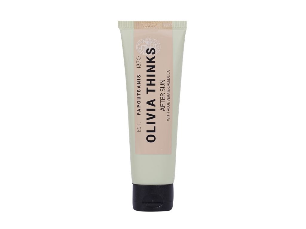 Olivia Thinks After Sun 25 ml mit veganer Formel, angereichert mit Aloe und Hyaluronsäure, beruhigt und pflegt die Haut nach dem Sonnenbaden, hält sie hydratisiert und weich, während Ihre Gäste einzigartige Momente der Entspannung genießen! Mit weicher Textur und wunderbarem Aroma, in umweltfreundlicher, recycelter und wiederverwertbarer Verpackung!