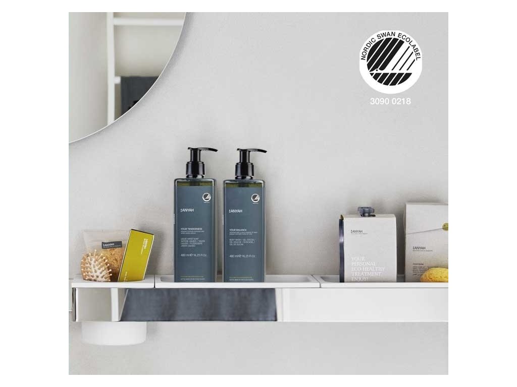 Anyah – Ecolabel Cosmetic – Begeben Sie sich mit Anyah, unserer außergewöhnlichen Hotelkosmetiklinie, auf eine Reise voller natürlicher Schönheit und nachhaltigem Luxus. Tauchen Sie ein in die reine Essenz des Wohlbefindens, denn Anyah kombiniert nahtlos Bio-Rezepturen mit der Verpflichtung zu höchster Qualität. Gönnen Sie sich die zarten Düfte und pflegenden Texturen, die unsere Produkte ausmachen und Ihnen ein revitalisiertes und beruhigendes Gefühl verleihen. Mit einem Fokus auf Nachhaltigkeit ist Anyah bestrebt, Ihr Hotelerlebnis mit verantwortungsvoll beschafften Zutaten und umweltfreundlichen Verpackungen zu verbessern und so eine harmonische Mischung aus Opulenz und Umweltverantwortung zu gewährleisten. Verschönern Sie Ihren Aufenthalt mit Anyah – wo Schönheit in perfekter Harmonie auf Nachhaltigkeit trifft.