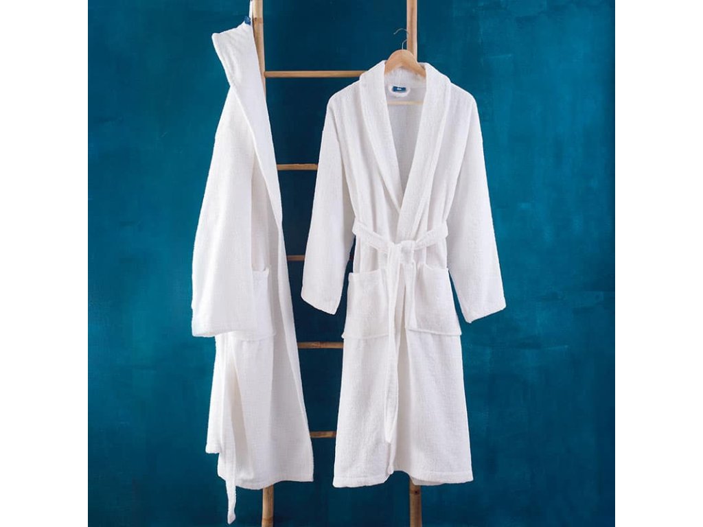 Der luxuriöse FROTE-Bademantel besteht aus 100 % gekämmter ägyptischer Baumwolle mit einem Gewicht von 400 gr/m2.