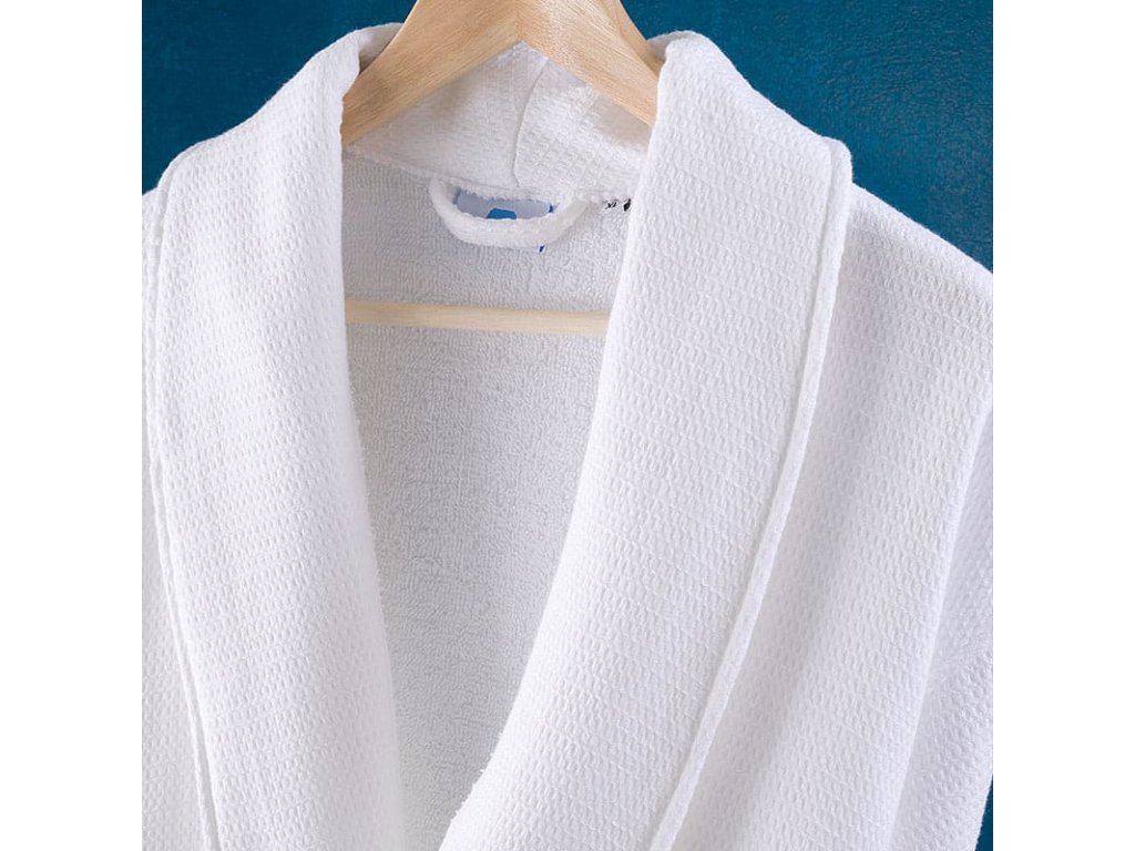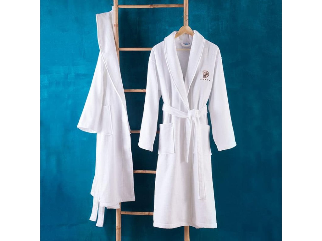Die luxuriöseste Kombination aus natürlicher Baumwolle in gemusterter PIQUE-Webung auf der Außenseite und der Produktion von absorbierendem FROTE-Material auf der Innenseite mit einem hohen Gewicht von 380gr/m². Ein solcher Bademantel ist die luxuriöseste Form des Bademantels, die Sie Ihren Gästen oder auch sich selbst schenken können.