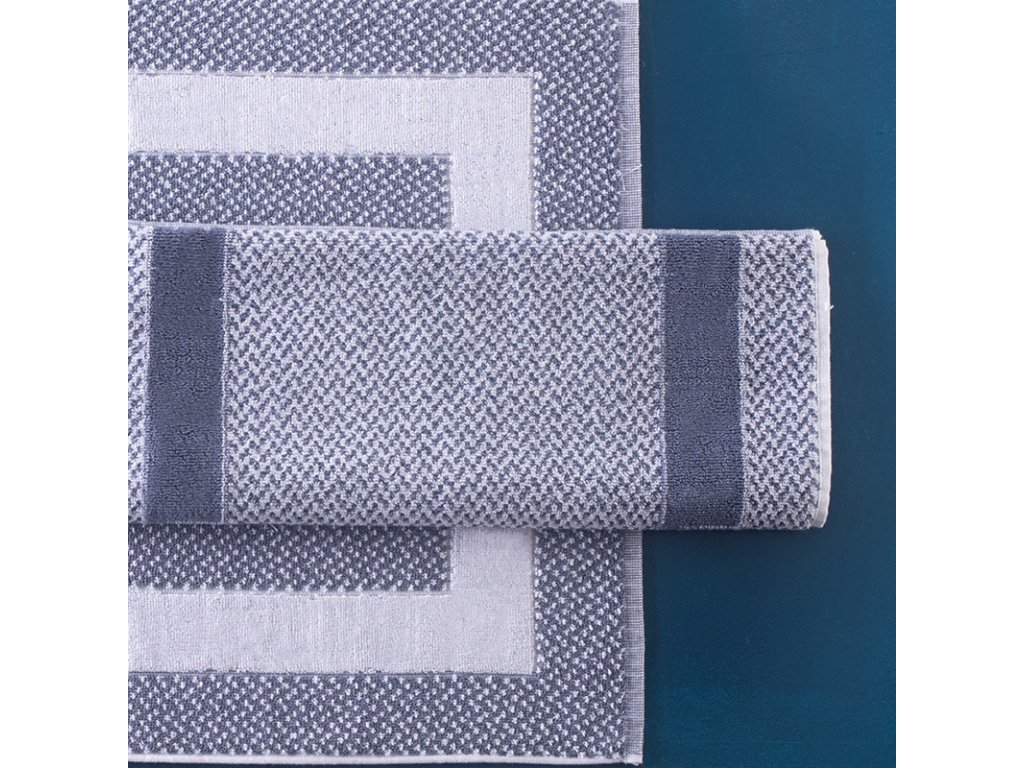 Der Badvorleger MAIANDROS mit niedrigem Flor ist aus doppelter Baumwolle mit einem Gewicht von 680 gr/m2 hergestellt.