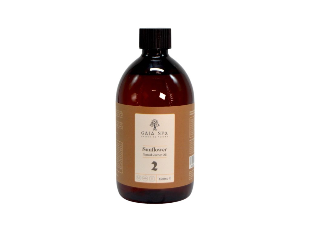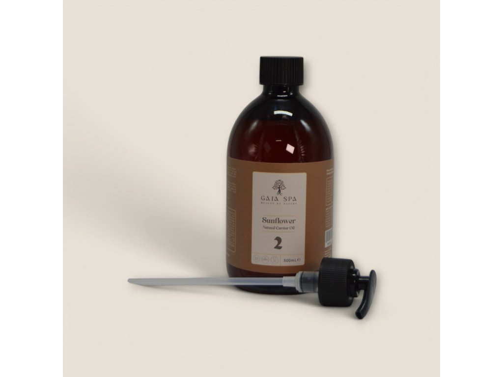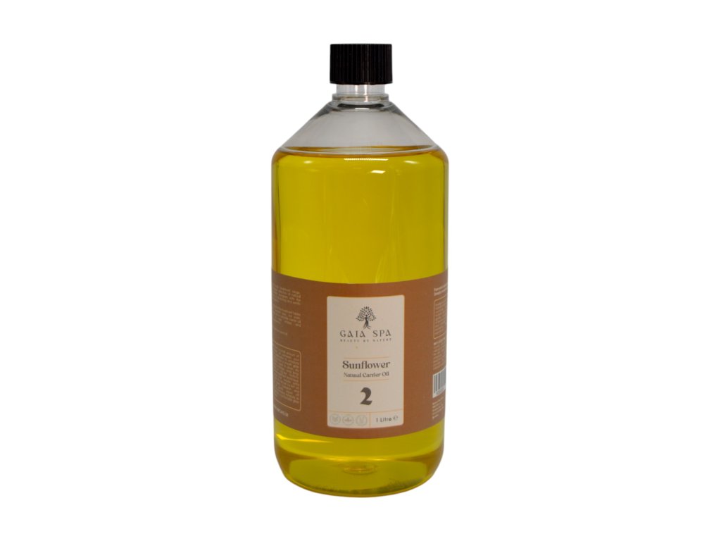 Basisches Massageöl Sonnenblume 2 (Sunflower) – GAIA SPA. Naturreines Sonnenblumenöl wird als wärmend und durchblutungsfördernd für die Haut beschrieben und eignet sich daher gut als Basisöl für kosmetische Rezepturen.