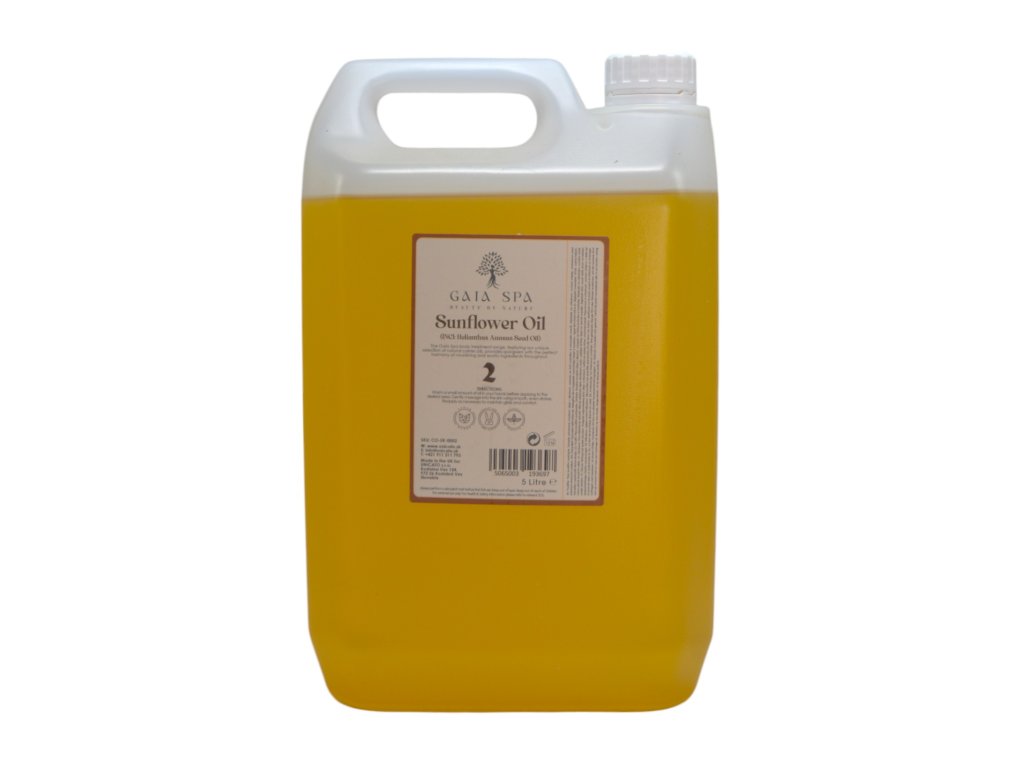 Verwöhnen Sie Ihre Haut mit den Vorteilen von natürlichem Sonnenblumenöl.Es hilft bei der Heilung von Akne und Ekzemen, hat eine erweichende Wirkung und heilt und regeneriert die Haut dank seines hohen Vitamin-E-Gehalts perfekt. Es nimmt einen wichtigen Platz in der Kosmetik, Massagepraxis, Pharmazie und anderen Bereichen ein.Ideal für alle Arten von Körpermassagen. Es enthält ausschließlich Öle pflanzlichen Ursprungs ohne Paraffine. Ideal für die Aromamassage als Trägeröl kombiniert mit ein paar Tropfen ätherischem Öl Ihrer Wahl.