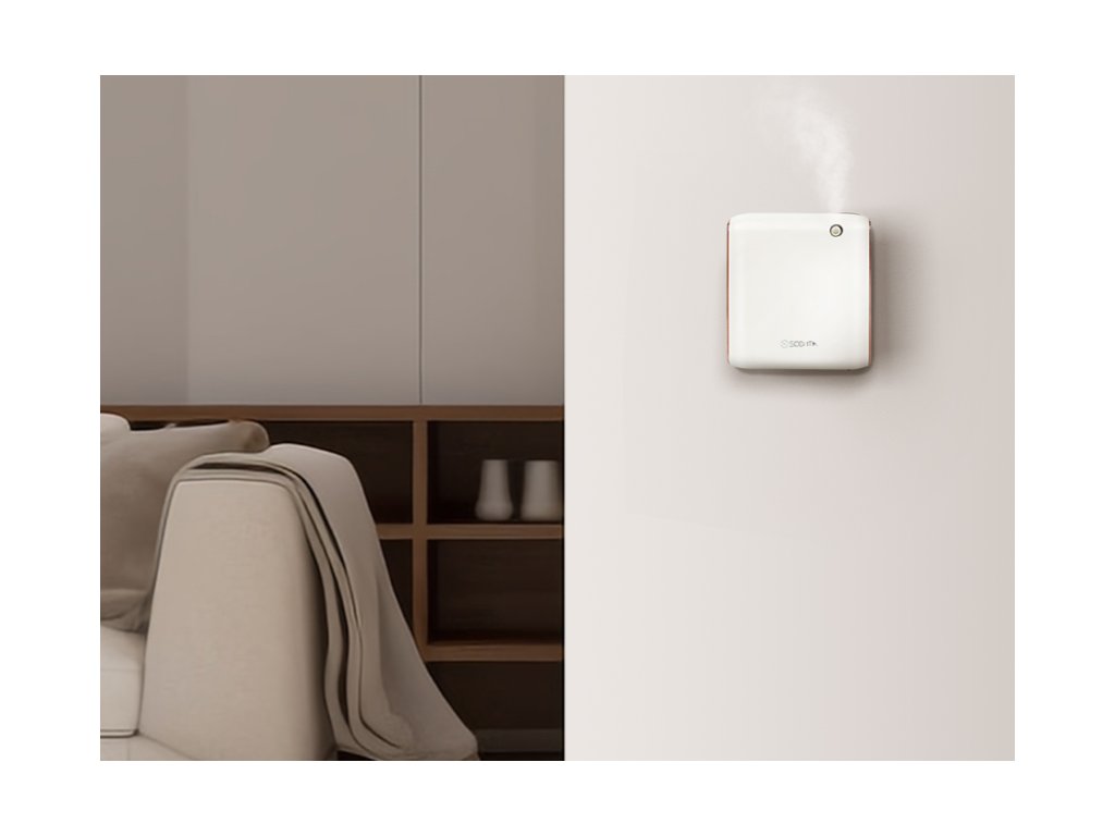 Luxuriöses kabelloses Duftgerät mit Bluetooth-App. Schaffen Sie eine ruhige und fesselnde Atmosphäre mit unserem batteriebetriebenen, wandmontierten Aromadiffusor. Zwei Leistungsoptionen sorgen für eine kontinuierliche Diffusion. Dekorative Zierleisten aus Kupfer verleihen Badezimmern, Wohnzimmern und Empfangsbereichen Eleganz. Verwandeln Sie ätherische Öle in einen feinen Nebel für eine betörende Atmosphäre, ohne Wasser hinzuzufügen.