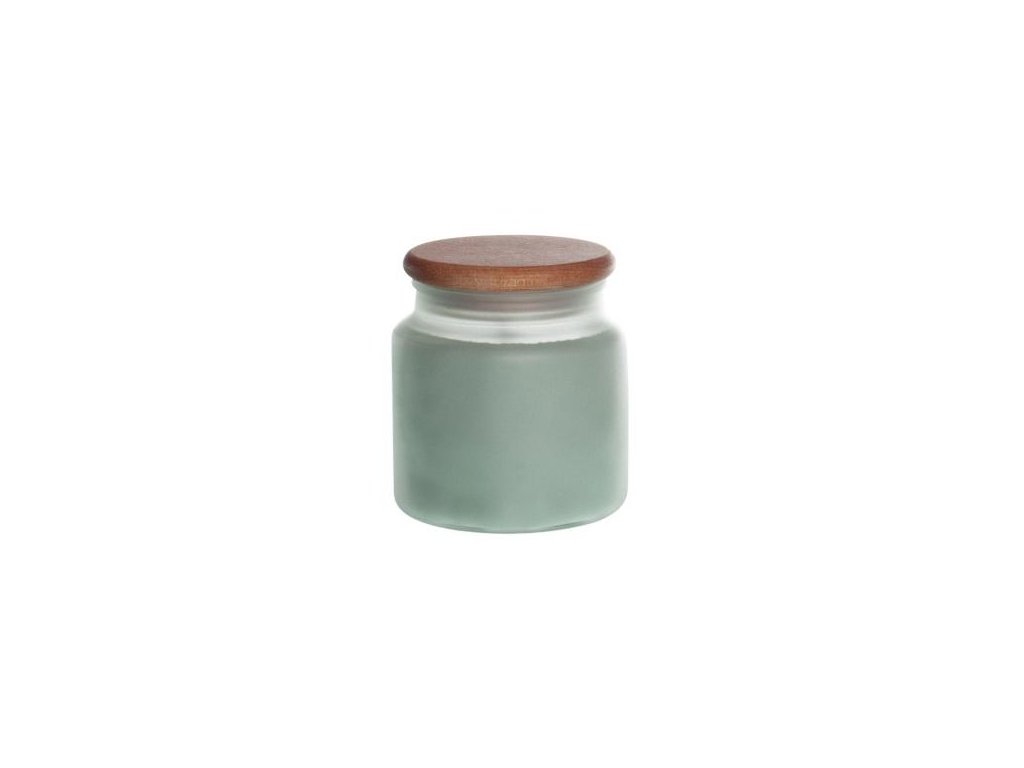 Glasgefäß mit „gefrorenem“ Glas und Holzdeckel