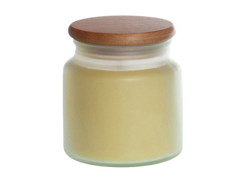 Glasgefäß mit „gefrorenem“ Glas und Holzdeckel