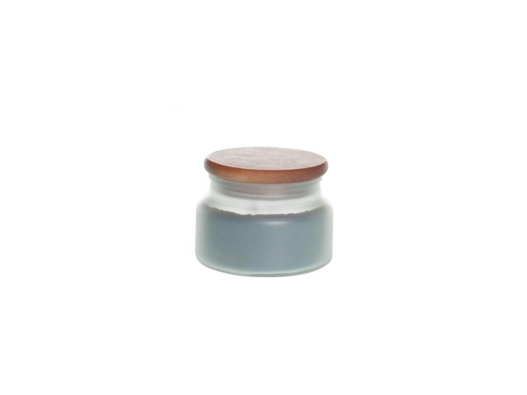 Glasgefäß mit „gefrorenem“ Glas und Holzdeckel