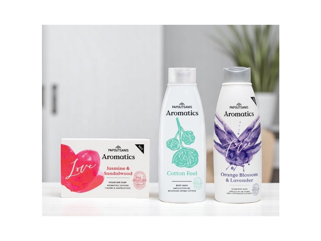 Im Alltag voller „Lärm“, Stress und steigenden Anforderungen gibt es einen Moment, der Sie mit Vitalität und Optimismus erfüllen kann. Dies ist Ihr Moment, in dem Papoutsanis Aromatics Sie aufmuntert und Sie auf eine traumhafte „Reise“ der Verjüngung und des Luxus mitnimmt. Entdecken Sie die gesamte Körperpflegelinie Aromatics sowie eine neue Linie von Körperduschgels mit weicher Textur, Niacinamid und Vitamin E in drei unwiderstehlichen Düften: Strahlendes Arganöl, Kokosnusskrümel und warme Vanille, süße Mandel und Orangenblüte. Sie sind 100 % vegan und sorgen für ein Gefühl von Feuchtigkeit, Wohlbefinden und einem einzigartigen Duft, der Sie den ganzen Tag begleitet. Gleichzeitig bietet die neue Linie konzentrierter Aromatics-Weichspüler Ihrer Kleidung reichhaltige Pflege und betörende, langanhaltende Düfte, die Ihre Persönlichkeit unterstreichen. Wählen Sie aus einzigartigen Düften den für Sie passenden aus und genießen Sie jetzt Ihren Lieblingsduft auf Ihrer Kleidung!