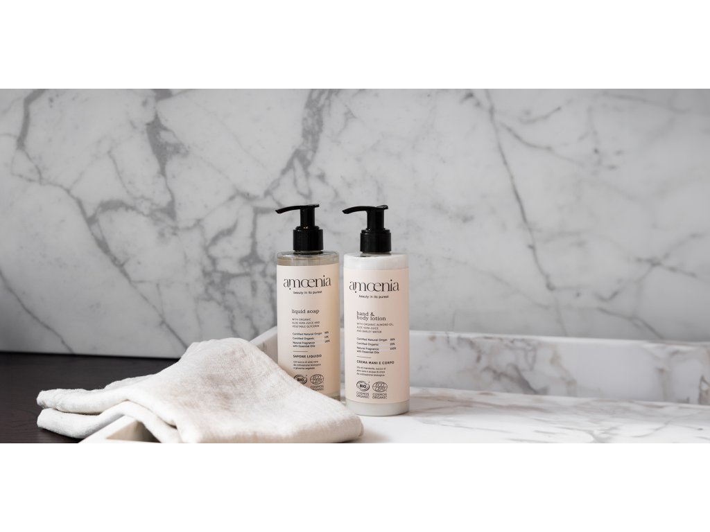 AMOENIA ist eine perfekte Linie, die die Schönheit und Zartheit des Körpers mit Respekt für die Umwelt um uns herum verbindet. Ein exklusives Wellness-Erlebnis bieten. Mit Cosmos-Zertifizierung mit natürlichen Inhaltsstoffen formuliert. Es handelt sich um eine Kollektion, die perfekt für alle Hauttypen und alle Haartypen geeignet ist. Dank der Garantie der dermatologisch getesteten Produkte für empfindliche Haut bietet sie kompromisslose Sicherheit und Sanftheit.
