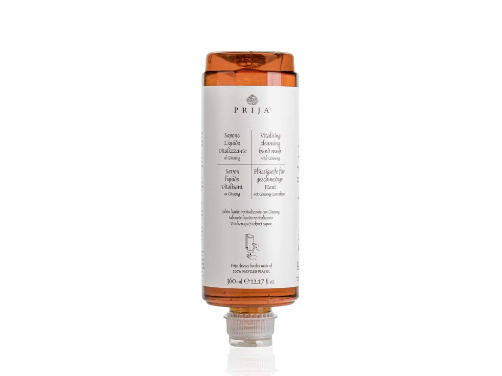 Flüssige Handseife mit Ginseng für die tägliche Hygiene. Reinigt die Hände sanft und verwöhnt sie mit dem betörenden Duft von Prija für ein sofortiges Gefühl von Vitalität und Wohlbefinden.