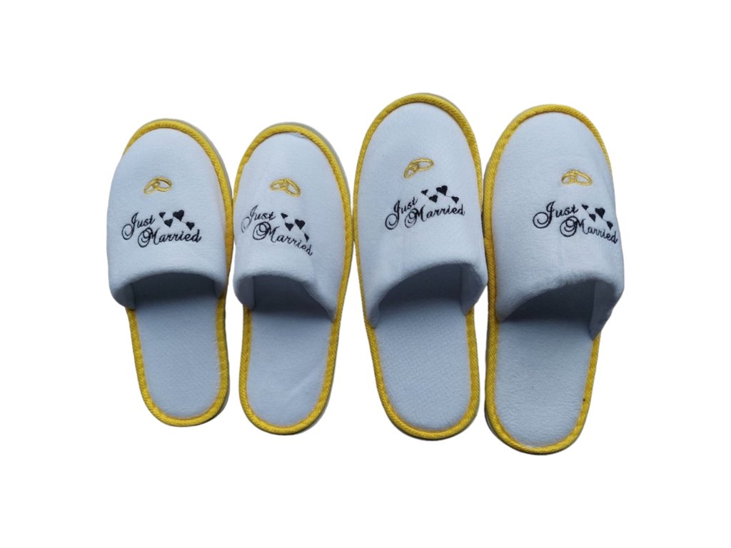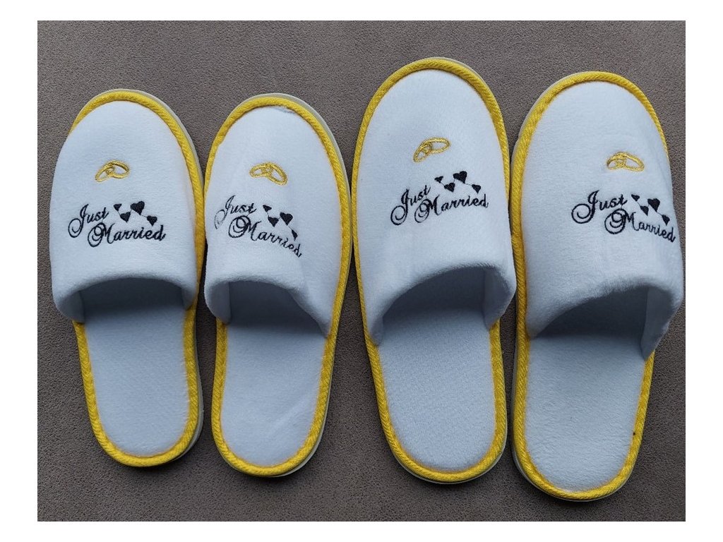 Hochzeitspantoffeln mit JUST MARRIED-Stickerei (Herren + Damen)