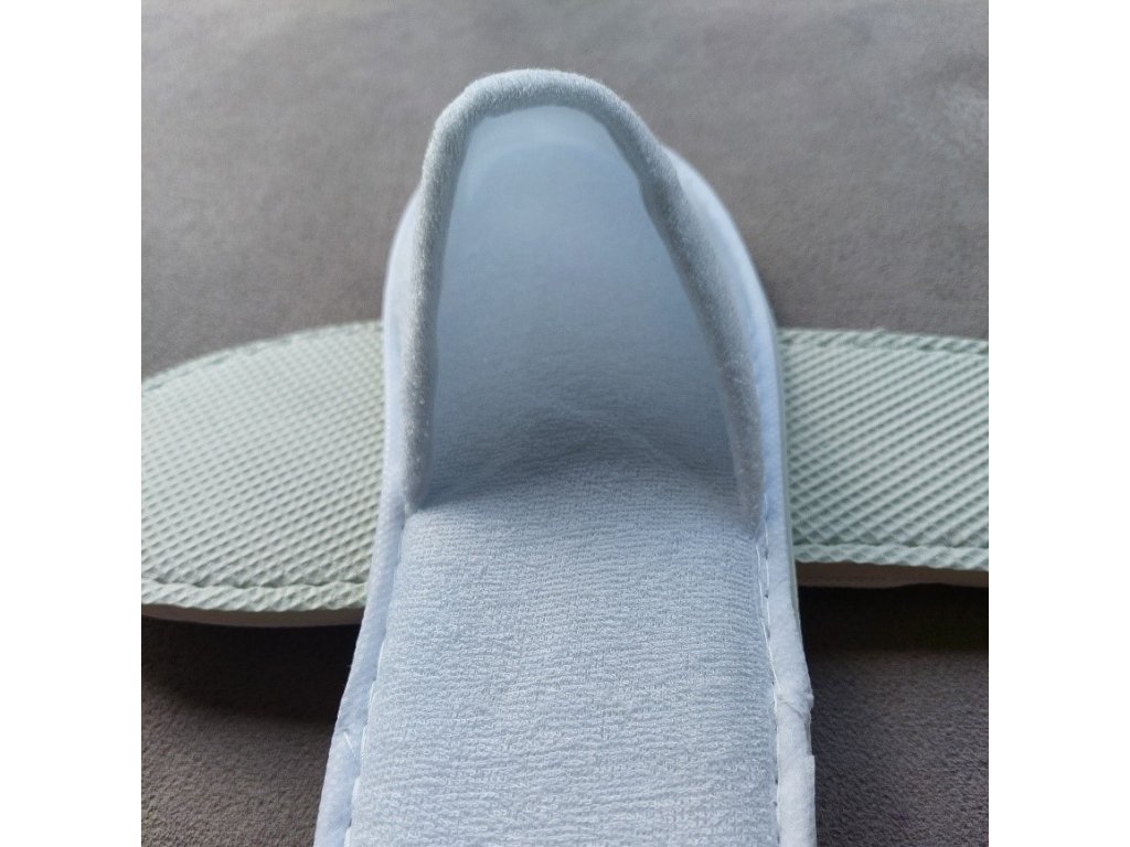 Die Sohle besteht aus 5 mm dickem EVA-Material, das für alle Arten von Bodenbelägen geeignet ist. Sie haben eine Standardgröße von 29 cm, können aber vollständig personalisiert werden, einschließlich eines gestickten oder gedruckten Logos. Sie werden in einem Karton mit 200 Stück geliefert, jedes Paar ist entweder in einem separaten Hygienebeutel oder in einem ökologischen Papierreifen mit dem „ECO FRIENDLY HOTEL“-Logo getrennt