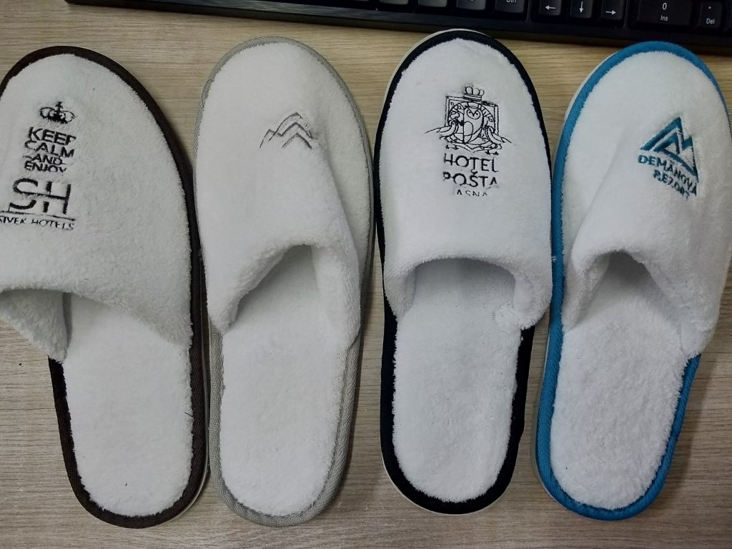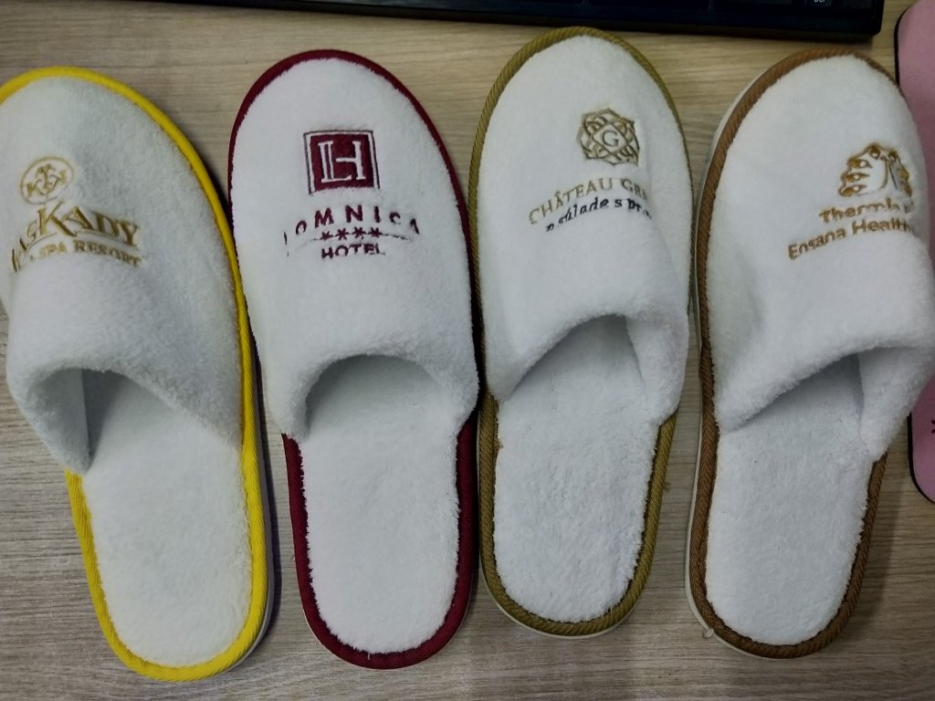 Wir haben umfangreiche Erfahrung in der Herstellung von Hotelhausschuhen mit Logodruck, ohne Aufpreis !!!