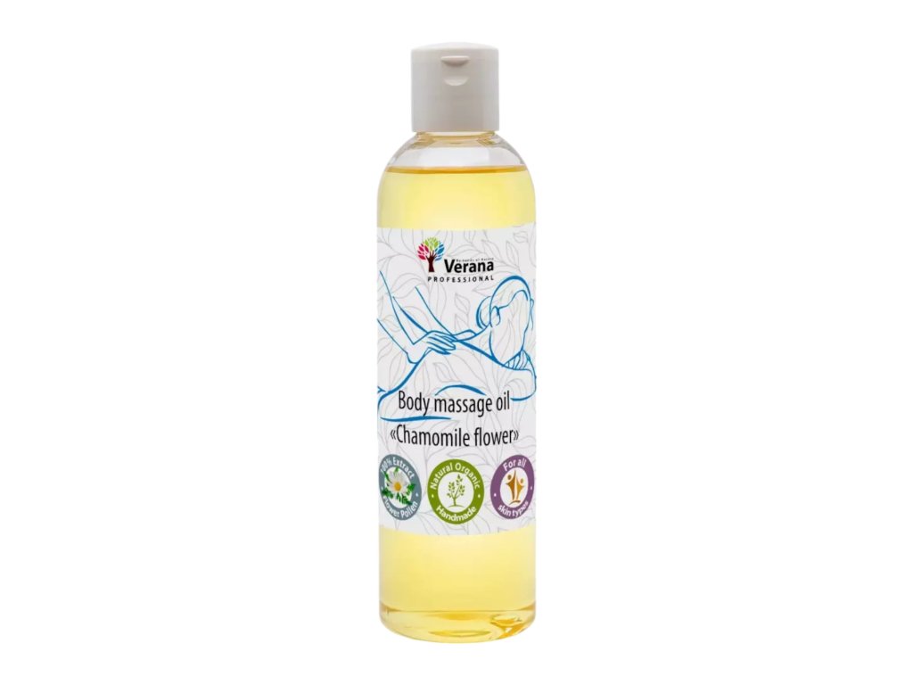 Das Massageöl Verana Kamillenblüte ist für die wirksame Körperpflege sowie für verschiedene Arten und Techniken von Massagen, Aromamassagen und SPA-Behandlungen für den Körper bestimmt.