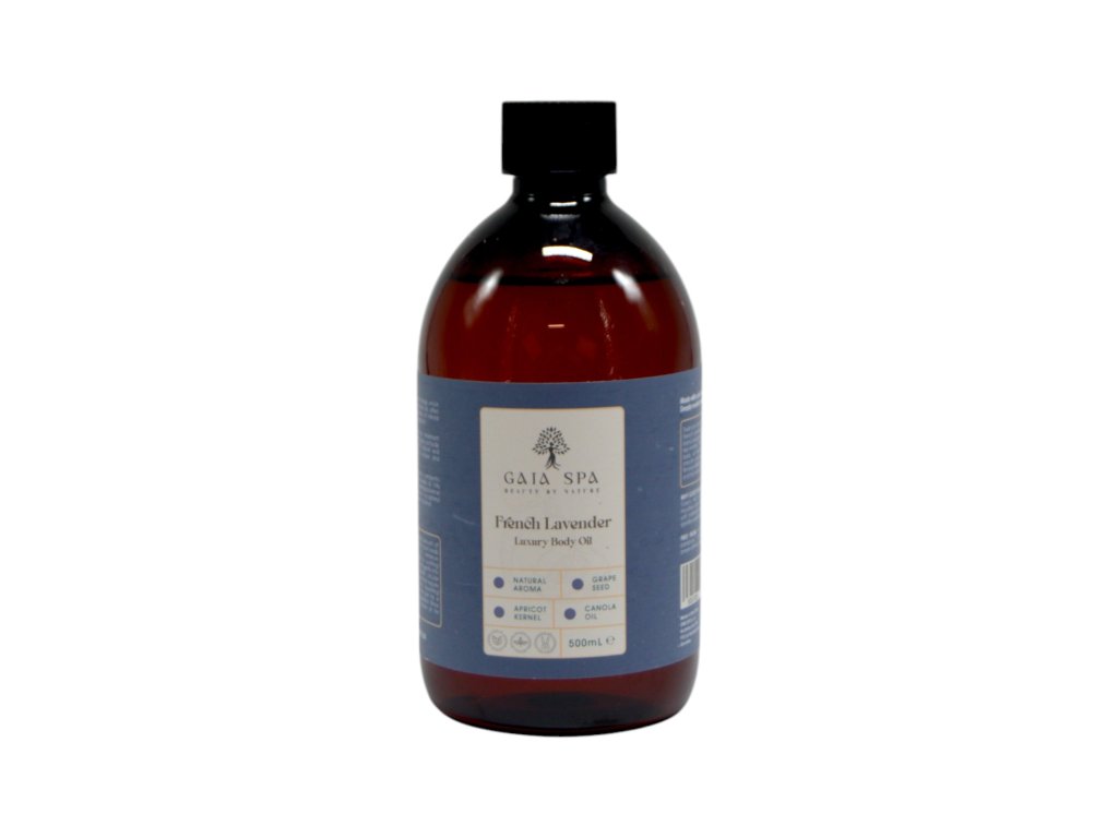 Luxuriöses Massageöl „Französischer Lavendel“ – GAIA SPA mit einem reichen und unverwechselbaren Duft. Verwöhnen Sie Ihre Haut mit den luxuriösen Vorteilen des französischen Lavendel-Körperöls, einer pflegenden Mischung, die tiefenwirksam Feuchtigkeit spendet und regeneriert. Dieses Körperöl macht Ihre Haut weich, geschmeidig und tiefenwirksam gepflegt. Es ist ideal für ein revitalisierendes Hautpflegeerlebnis mit einem reichen und natürlichen Lavendelaroma.Lavendel-Massageöl hebt die Stimmung und kann dank seiner beruhigenden Wirkung auch bei Schlaflosigkeit helfen. Löst Verspannungen und vitalisiert den Körper.Es sorgt für das perfekte Wellness-Erlebnis.