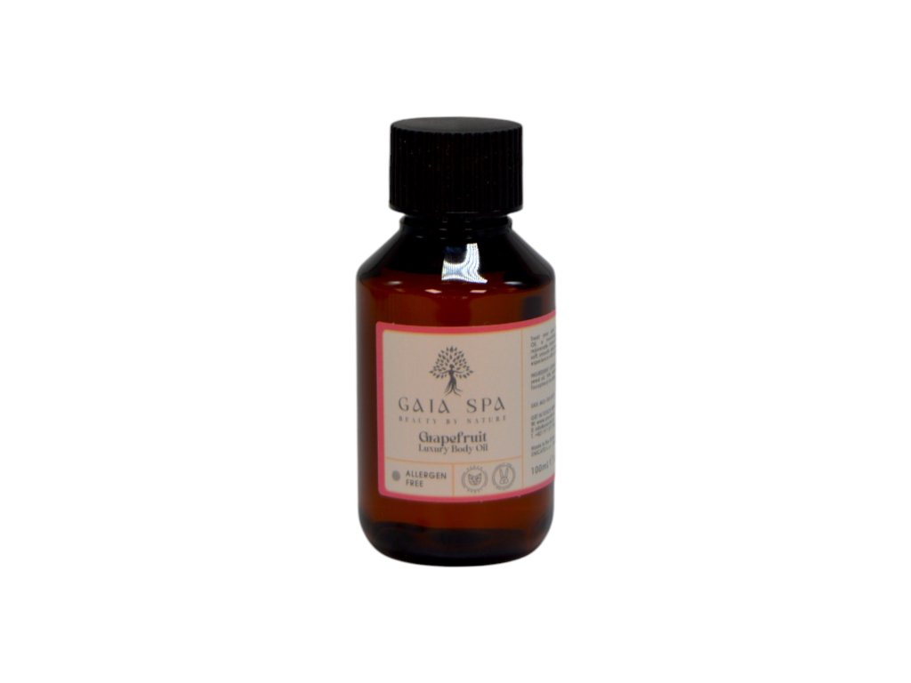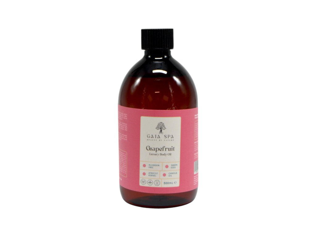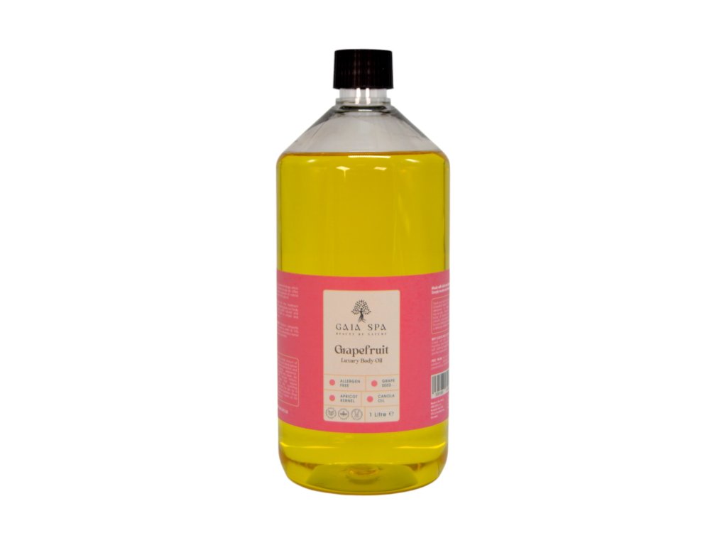 Luxuriöses Massageöl Grep (Grapefruit) – GAIA SPA mit einem reichen und erkennbaren Duft. Allergenfrei. Es hilft bei der Fettverbrennung und bekämpft Cellulite, verlangsamt den Hautalterungsprozess und fördert die Hauterneuerung. Das Öl erhöht die Hautelastizität, spendet Feuchtigkeit und pflegt die Haut. Gönnen Sie sich den Luxus eines pflegenden Öls, das die Haut tiefenwirksam mit Feuchtigkeit versorgt und regeneriert. Das zarte Aroma der Grapefruit lindert Stress und Müdigkeit und beruhigt das Nervensystem. Es sorgt für das perfekte Wellness-Erlebnis.