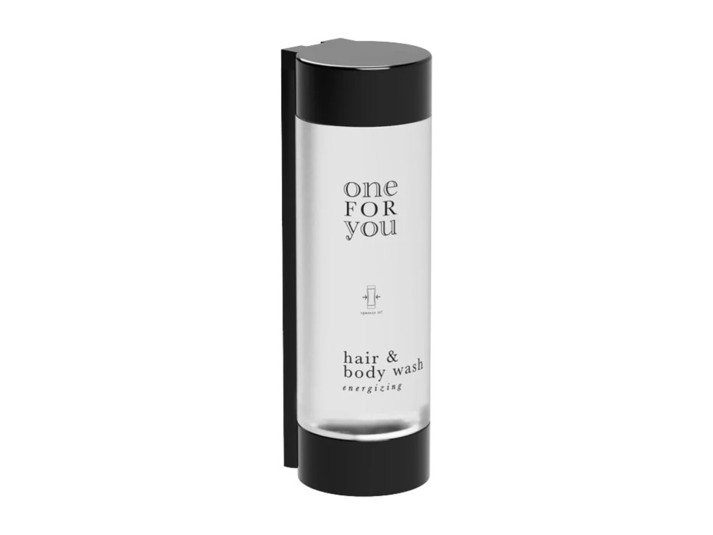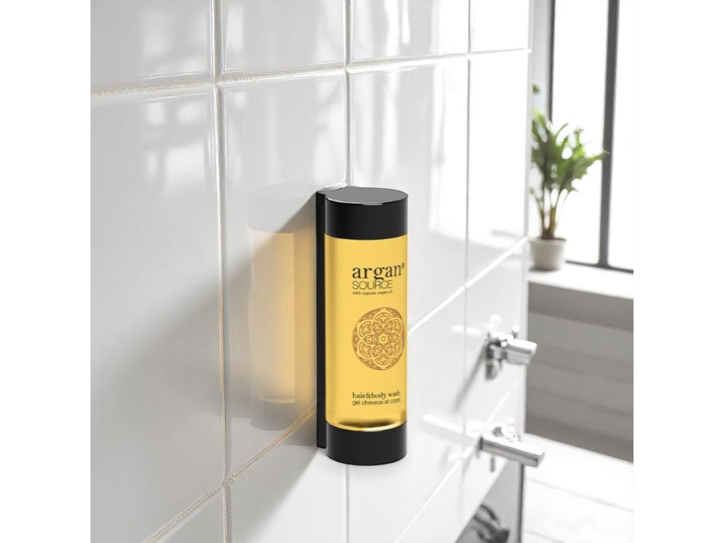 Die Halterung kann mit doppelseitigem Klebeband oder mit Schrauben zur Wandmontage verwendet werden, beide Möglichkeiten sind bereits im Preis enthalten. Es ist für nachfüllbare, quetschbare 320-ml-Spender konzipiert, die eine minimale Verschwendung von Kosmetikprodukten gewährleisten (dank des Membranverschlusses, der eine kontrollierte Dosierung ermöglicht).