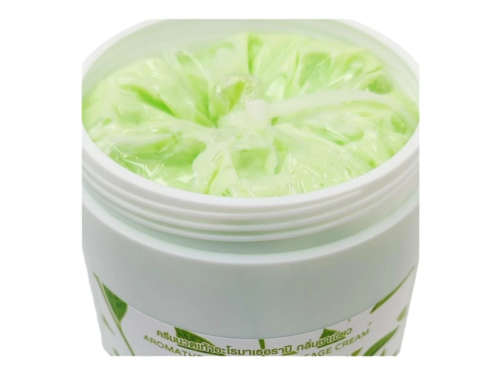 Massagecreme Grüner Tee für Körper und Füße KITAMA ist ideal für Aromatherapie und Fußmassage. Es wird in der Thai-Massage, Wellness-Massage, Physiotherapie, Pediküre usw. eingesetzt. Dank des angenehmen Aromas von grünem Tee wirkt es beruhigend.