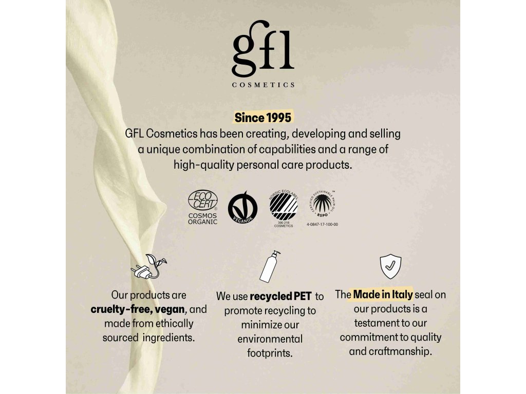Dieses Set von GFL passt perfekt in Ihr Badezimmer und harmoniert ideal mit den Kosmetikprodukten von PRIJA. Wir denken umweltbewusst: Die Verpackung besteht aus Recyclingpapier und ist somit umweltfreundlich.
