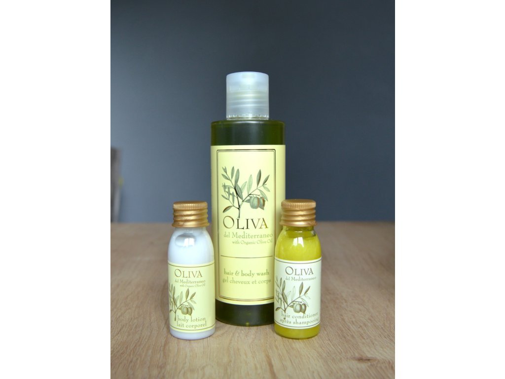 OLIVA – Diese Kollektion mit Bio-Olivenöl ist unsere Hommage an die alten italienischen Schönheitsgeheimnisse, die schon immer zu den wertvollsten Geheimnissen von MARE NOSTRUM gehörten. Hotelkosmetik, die besonders sanft reinigt und Feuchtigkeit spendet und die Haut geschmeidig und angenehm duftend macht. UNSERE AUSWAHL FÜR SIE: Körper- und Haargel 200ml, Spülung 30ml, Körpercreme 30ml.