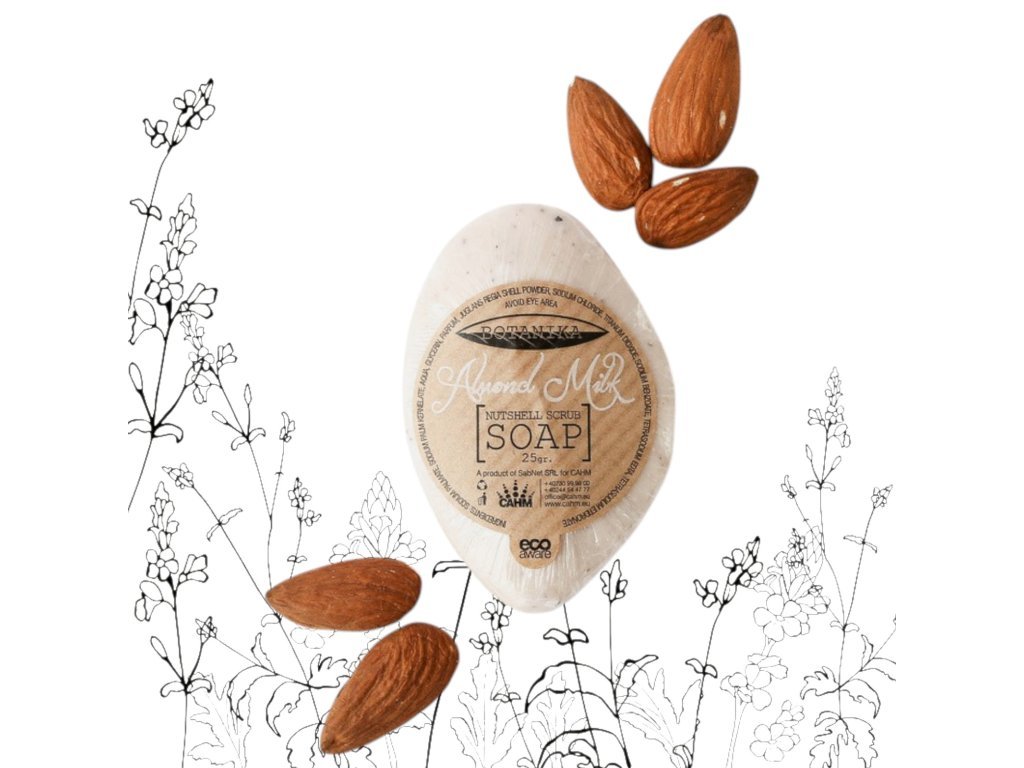 Die Botanika Bio-Seife 25 g mit ihrem innovativen Design in Form eines kleinen Steins ist die ideale Wahl für Hotels, die sich durch Originalität auszeichnen möchten. Diese Bio-Hotelseife hat eine reichhaltige und weiche Textur und einen exklusiven Mandelduft. Pflanzenöle pflegen die Haut, während die sanfte Walnussschale sie geschmeidig macht.