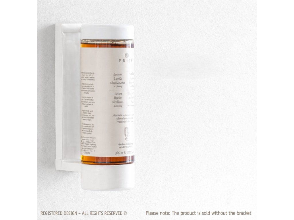 Die Halterung kann mit doppelseitigem Klebeband an der Wand befestigt werden. Sie ist für nachfüllbare, 360-ml-Spender mit Quetschverschluss konzipiert, die dank des Membranverschlusses eine kontrollierte Dosierung und somit minimalen Produktverlust gewährleisten.