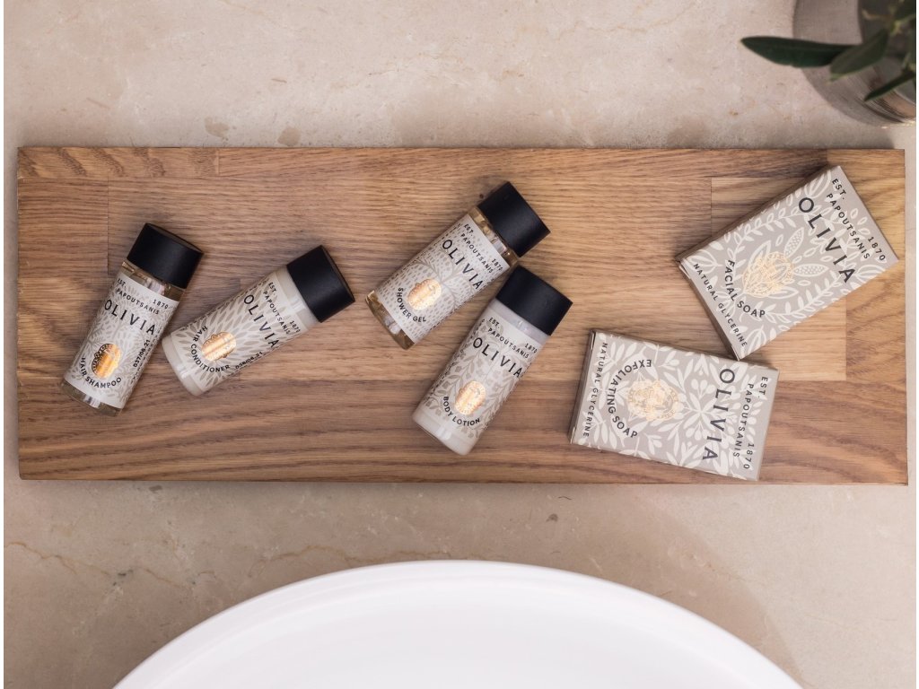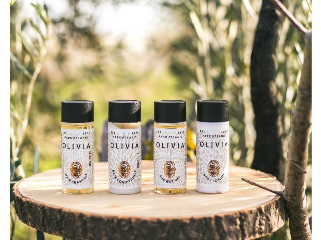 OLIVIA bietet Ihren Gästen das natürliche Gefühl mediterraner Olivenhaine und verwöhnt sie mit den zarten Eigenschaften der Oliven. Die Haarspülung Olivia mit Olivenextrakten und angereichert mit Vitamin E, das für seine antioxidativen Eigenschaften bekannt ist, reinigt Ihr Haar sanft und macht es weich und glänzend! Für alle Haartypen geeignet. Ein reines und authentisches Erlebnis, das Körper, Geist und Sinne mit belebenden Düften von Bergamotte, Pfirsich, weißem Moschus und Lavendel stimuliert und verwöhnt!