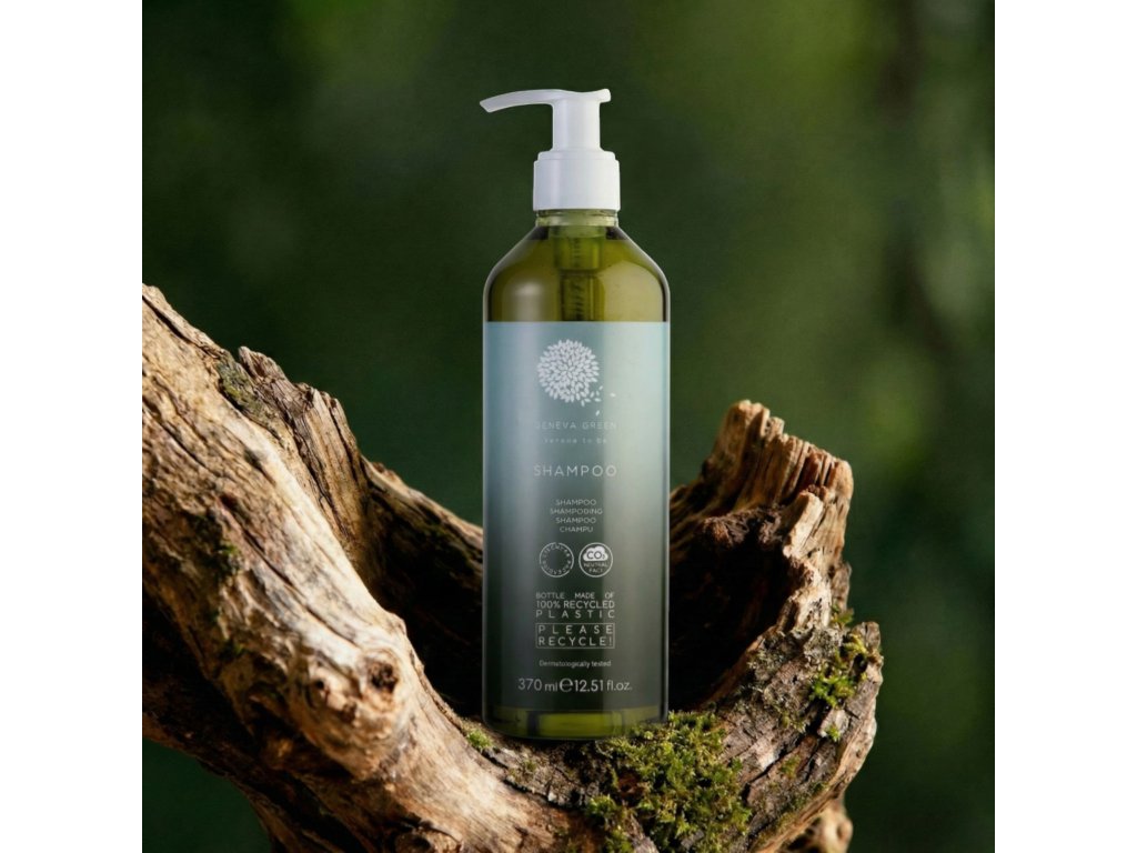 Das Geneva Green Shampoo ist mit Bio-Extrakt aus schwarzem Tee und bittersüßer Orange angereichert.