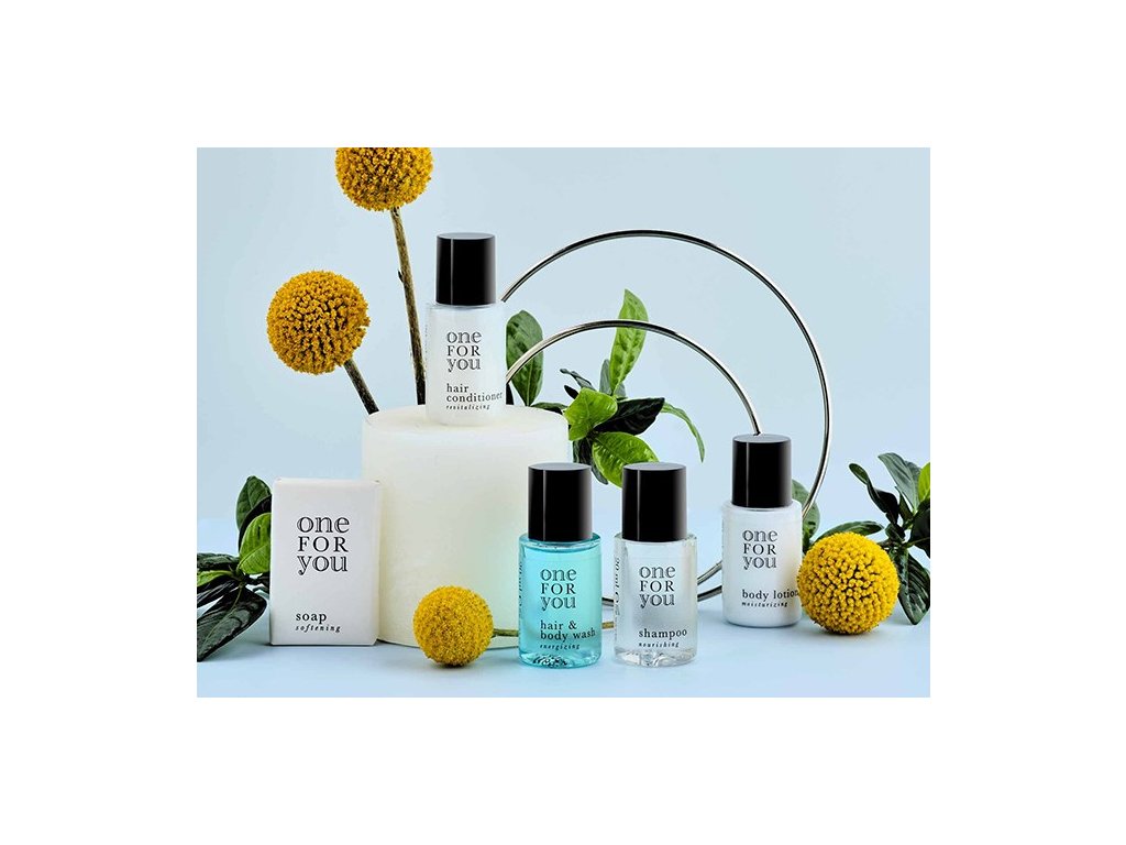 ONE FOR YOU: die zeitlose Grundierung One for You ist die einfachste und minimalistischste Linie der Hotelkosmetik, ist aber dank der Vielzahl an Accessoires, die die traditionellen Artikel ergänzen, ideal für die anspruchsvollsten Gäste. Es handelt sich um eine reichhaltige Serie mit attraktivem Design. Die Produkte sind dermatologisch getestet und bestehen aus Weizenproteinen, die die Haut nähren, dem Haar Glanz, Geschmeidigkeit und Volumen verleihen und für ihre hervorragenden ernährungsphysiologischen, schützenden, weichmachenden und restrukturierenden Eigenschaften bekannt sind.