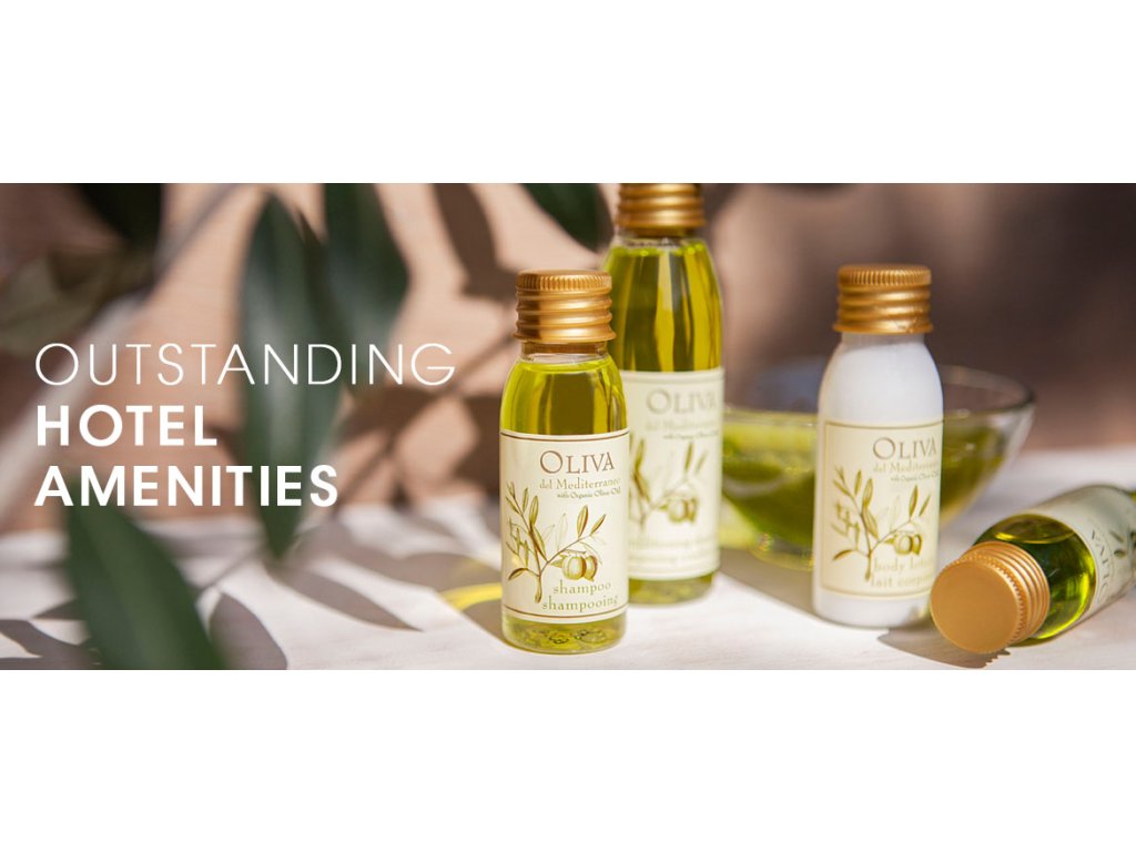 Hotelkosmetik OLIVA del Mediterraneo mit Bio-Olivenöl. Die Vitalität des Olivenöls liegt im Reichtum an Antioxidantien und wirkt gegen die freien Radikale, die für die Zellalterung verantwortlich sind. Vitamin E, Phytosterole, Tocopherol, Squalen erfüllen alle grundlegenden Funktionen, die die Haut benötigt, um langfristig jung und frisch zu bleiben. Diese Produkte reinigen sanft und hinterlassen eine straffe und geschmeidige Haut.