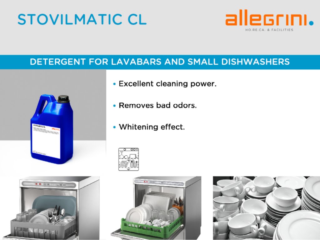 Tassen mit Tee- und Koffeinrückständen können eine Herausforderung sein, insbesondere wenn Sie Dutzende davon in kurzer Zeit spülen müssen. STOVILMATIC CL ist ein alkalisches Flüssigreinigungsmittel mit kontrollierter Schaumbildung, ideal für die gründliche und hygienische Reinigung von Tellern, Tassen und Gläsern in Geschirrspülmaschinen und kleinen Geschirrspülern. Es sorgt für ein einwandfreies Spülen und hinterlässt keine Rückstände oder Streifen auf dem Geschirr, das immer perfekt ist. Dank des enthaltenen Chlors beseitigt es typische Spülmaschinengerüche und entfernt effektiv Tee- und Koffeinrückstände, sodass Ihre Tassen wieder strahlend weiß und strahlend sind.