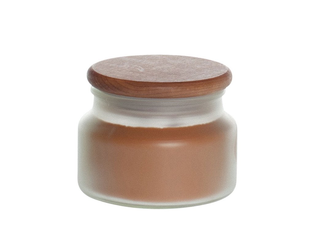 Glasgefäß mit „gefrorenem“ Glas und Holzdeckel