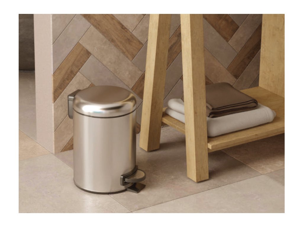 ELIT 12L Tritt-Auf-Mülleimer - innenliegender Tritt-Auf-Mülleimer aus Edelstahl, hygienisches Öffnen mit Fußpedal, ausgestattet mit einem innenliegenden herausnehmbaren Kunststoffbehälter, abgerundete Kanten.