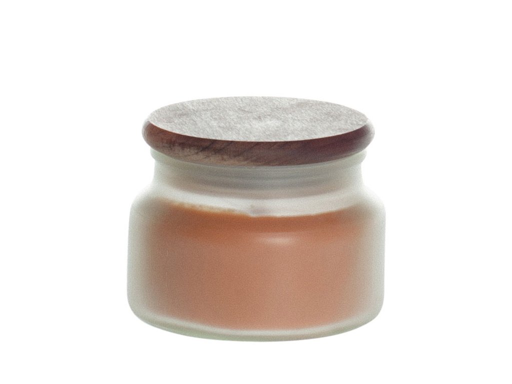 Glasgefäß mit „gefrorenem“ Glas und Holzdeckel