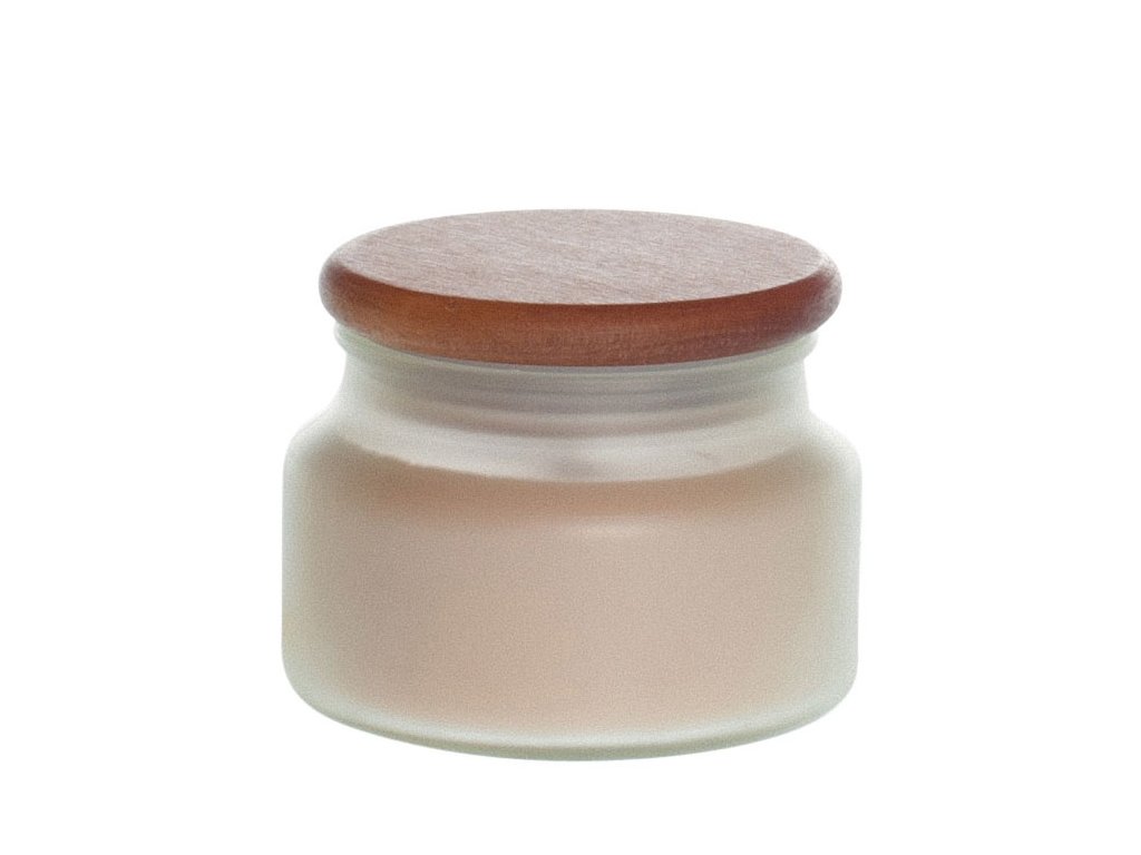 Glasgefäß mit „gefrorenem“ Glas und Holzdeckel